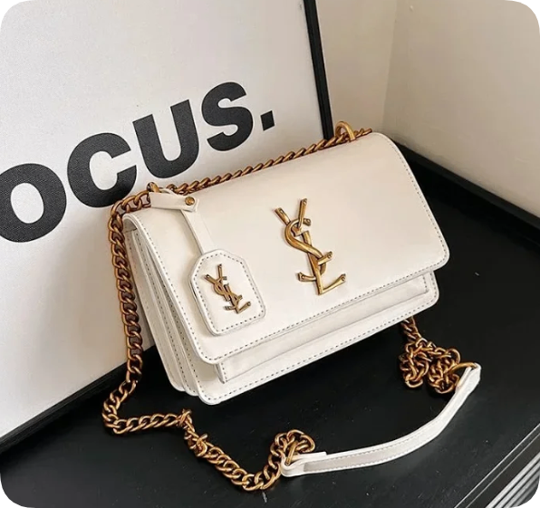 Saint Laurent Medium Sunset Chain Bag In Leather White Gold